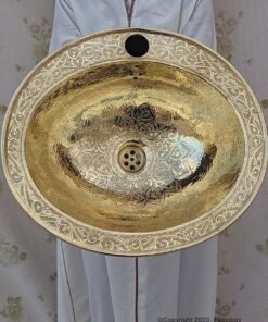 CUSTOMIZABLE Brass Sink – Brass Sink – Hand HammeredEngraved Brass Sink – Oval Gold Finish Engraved Sink – Farmhouse Vessel Sink – Bar Sink