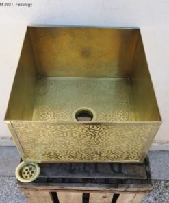 CUSTOMIZABLE Brass Bathroom Sink – Handmade Farm Square Bathroom Sink – Bathroom Decor – Engraved Finish Brass Sink – Vessel Bathroom Sink