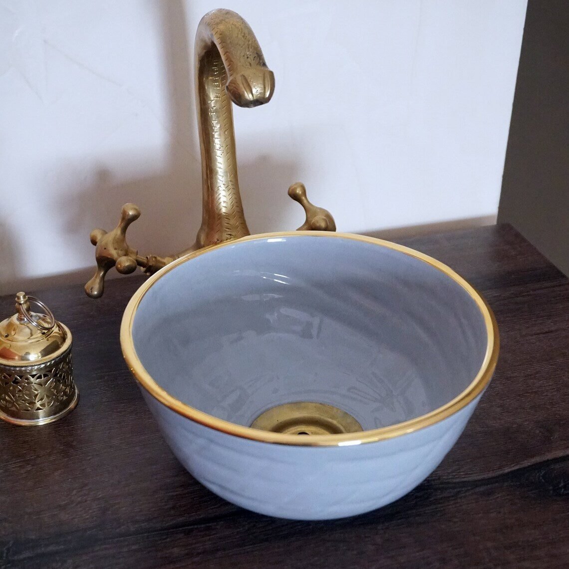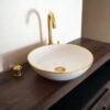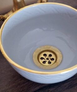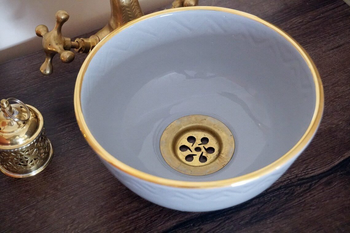 This washbasin is perfect for both traditional and modern environments; colourful, imaginative. We often create our washstands out of old furniture such as side cabinets, vintage sewing machine tables. Works perfectly with casted concrete, marble, stone, tiled or wood. Let your imagination run wild and create a unique bathroom.