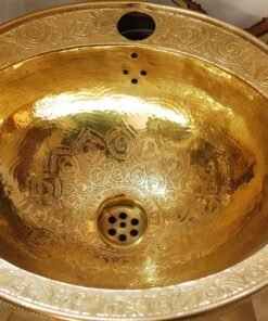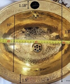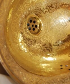 hikwa’s Premium Brass Sink allows you to impress your guests and partake in delight each time you step inside your bathroom. This sink makes a statement on its own showcasing superior engineering. The sink is made of pure copper brass material and is gold finished hammered finish giving it a dramatic sturdy appearance.