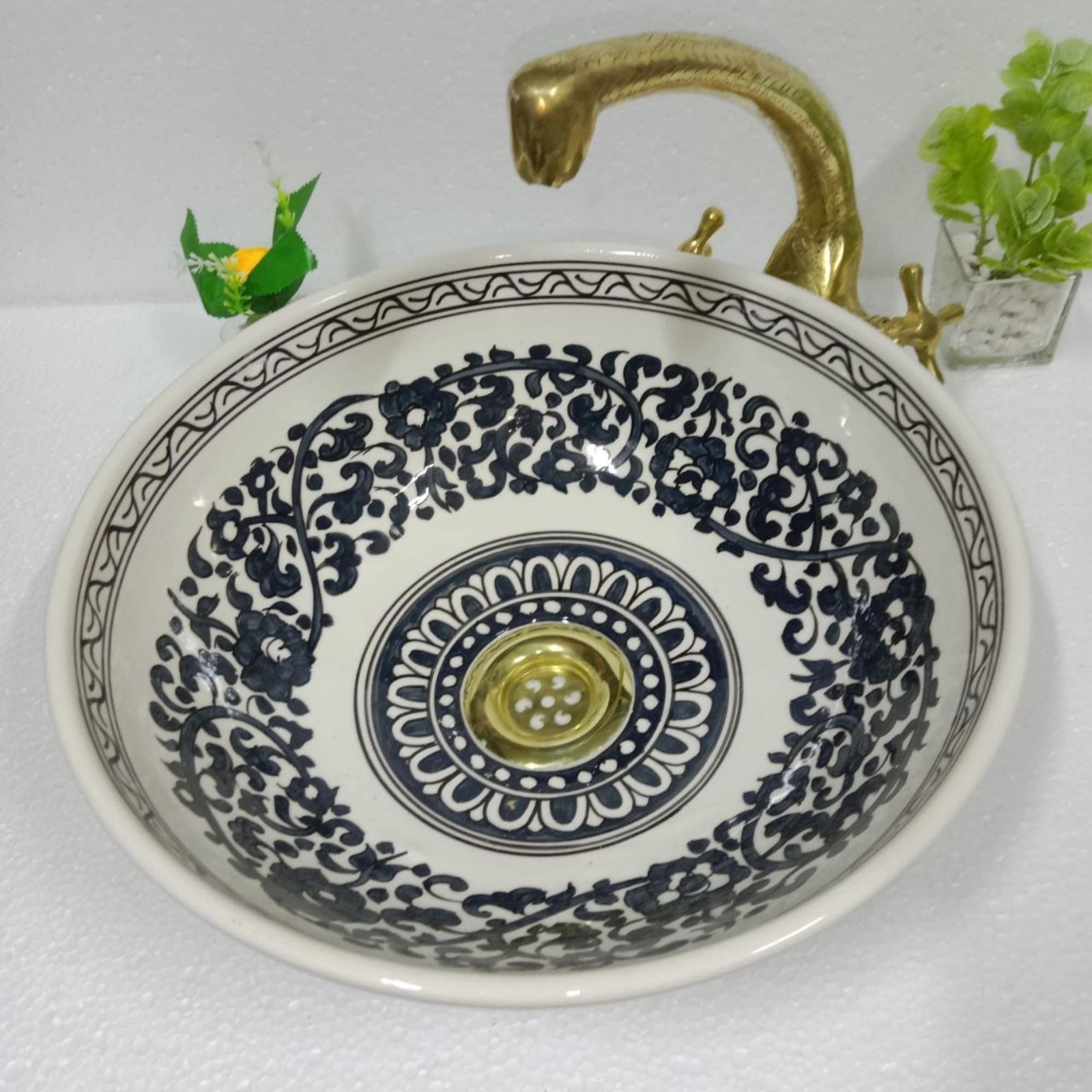 Made from high-quality ceramic, these sinks are not only visually stunning but also durable and resilient. The hand-painted designs feature traditional motifs inspired by Moroccan culture, creating a unique and timeless aesthetic that effortlessly blends modern sophistication with old-world charm.