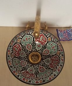 Transform your bathroom or kitchen into a sanctuary of style and authenticity with this one-of-a-kind piece. The carefully glazed surface enhances both the visual appeal and longevity of the sink, making it a practical and stunning addition to your home. Whether you’re renovating your space or simply looking to infuse a touch of global allure, our Moroccan handmade ceramic sink is the perfect choice.