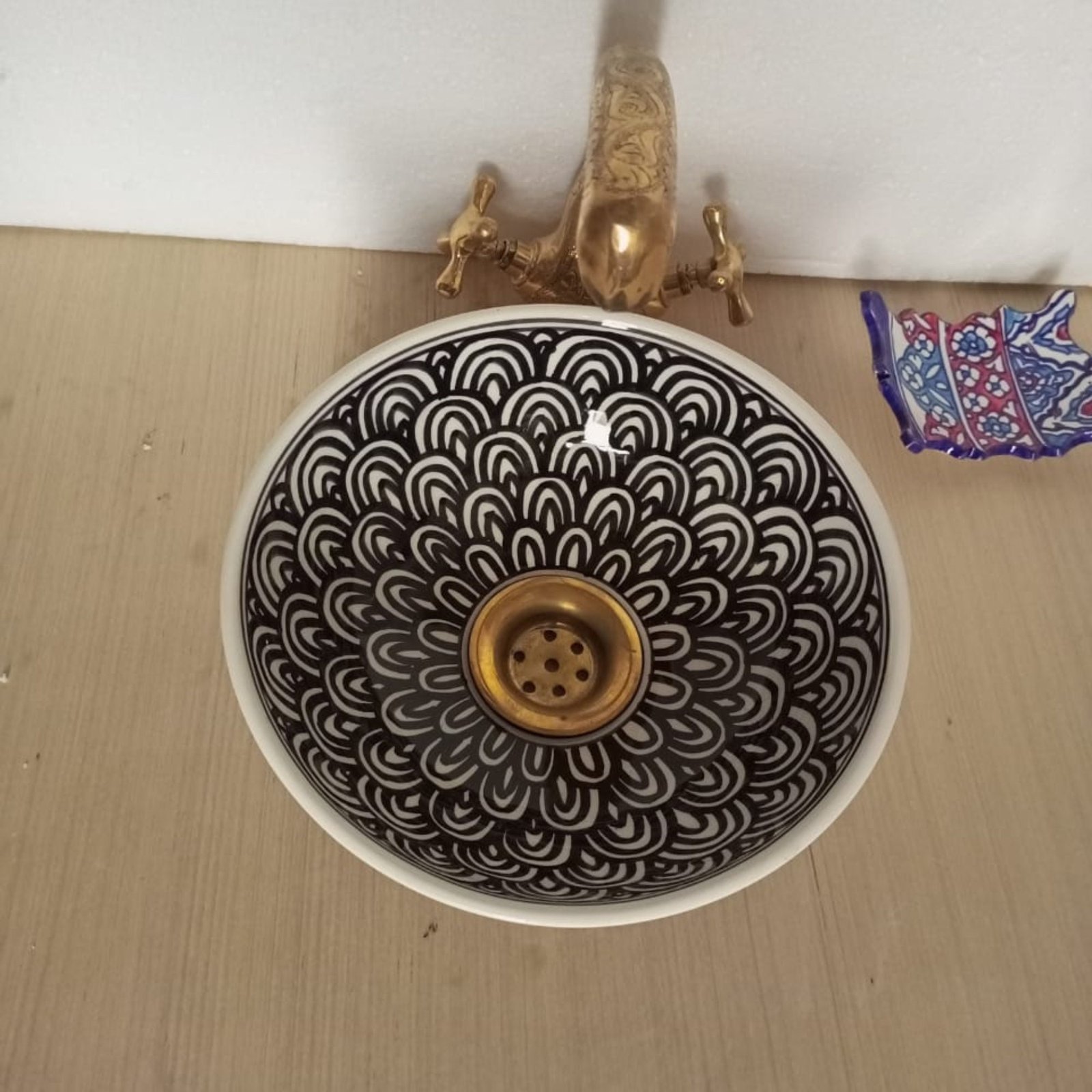 Artisanal Elegance: Handmade Moroccan Ceramic Sink – Exquisite Hand-painted Beauty for Your Arabic-inspired Bathroom