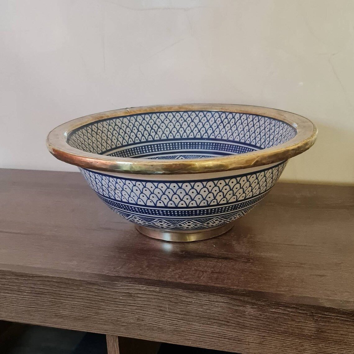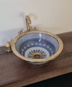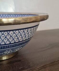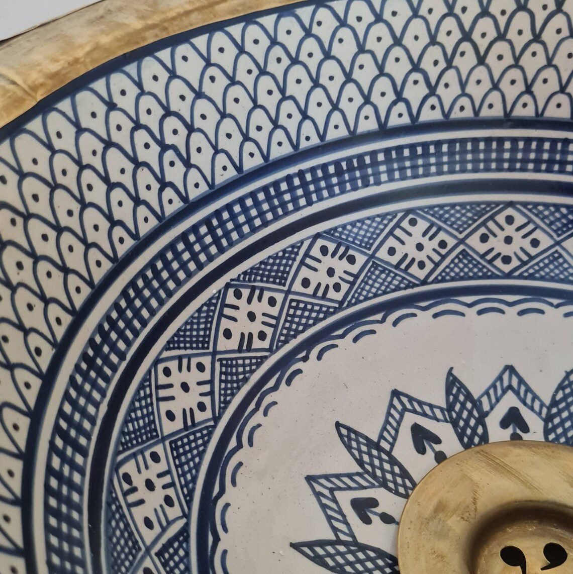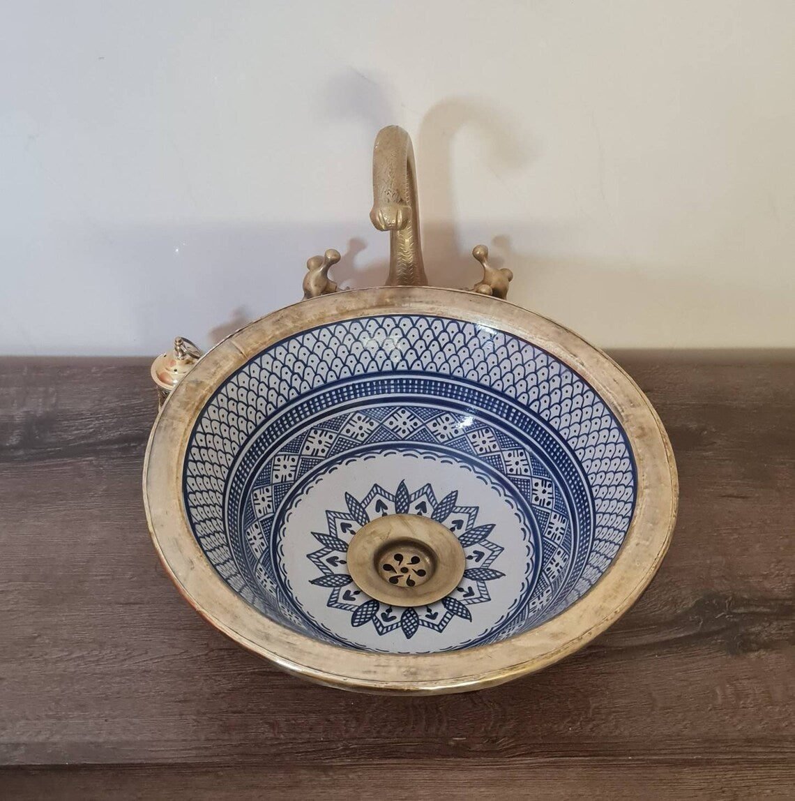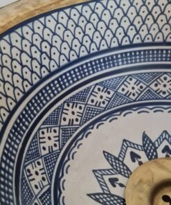 this traditional Moroccan sink SEA AND FISH SCALES design was handcrafted by professional workers, it represents the cultural diversity of Moroccan handcrafts and that is because of its design, material and the natural colors used at the surface of the sink, the height of this amazing piece of art is possibility of personal customization. by obtaining such objects you would be helping a dying craft to flourish again so that contact between the past and the present would never die not mentioning the happiness it would bring to poor workers on fields like this .