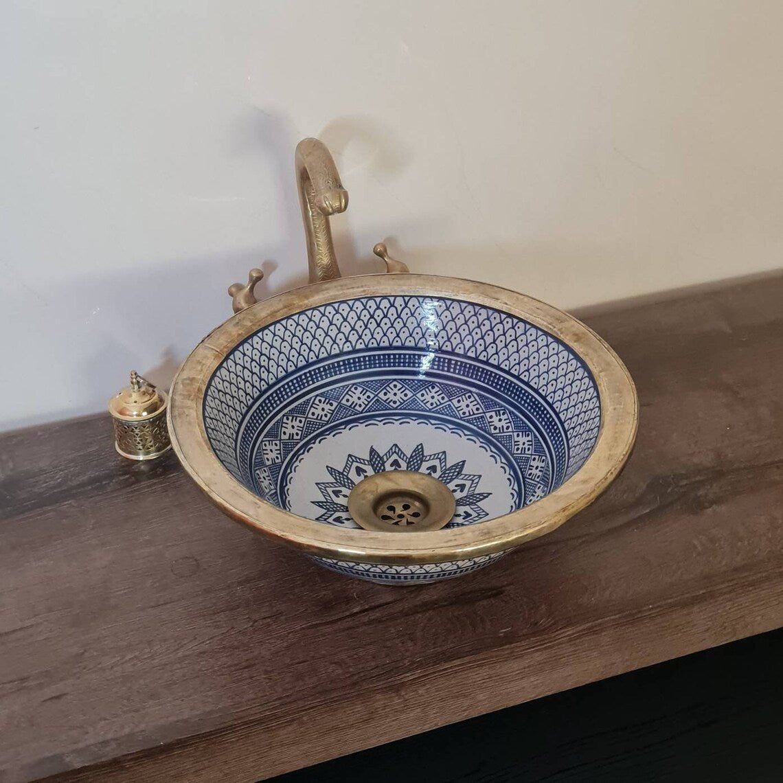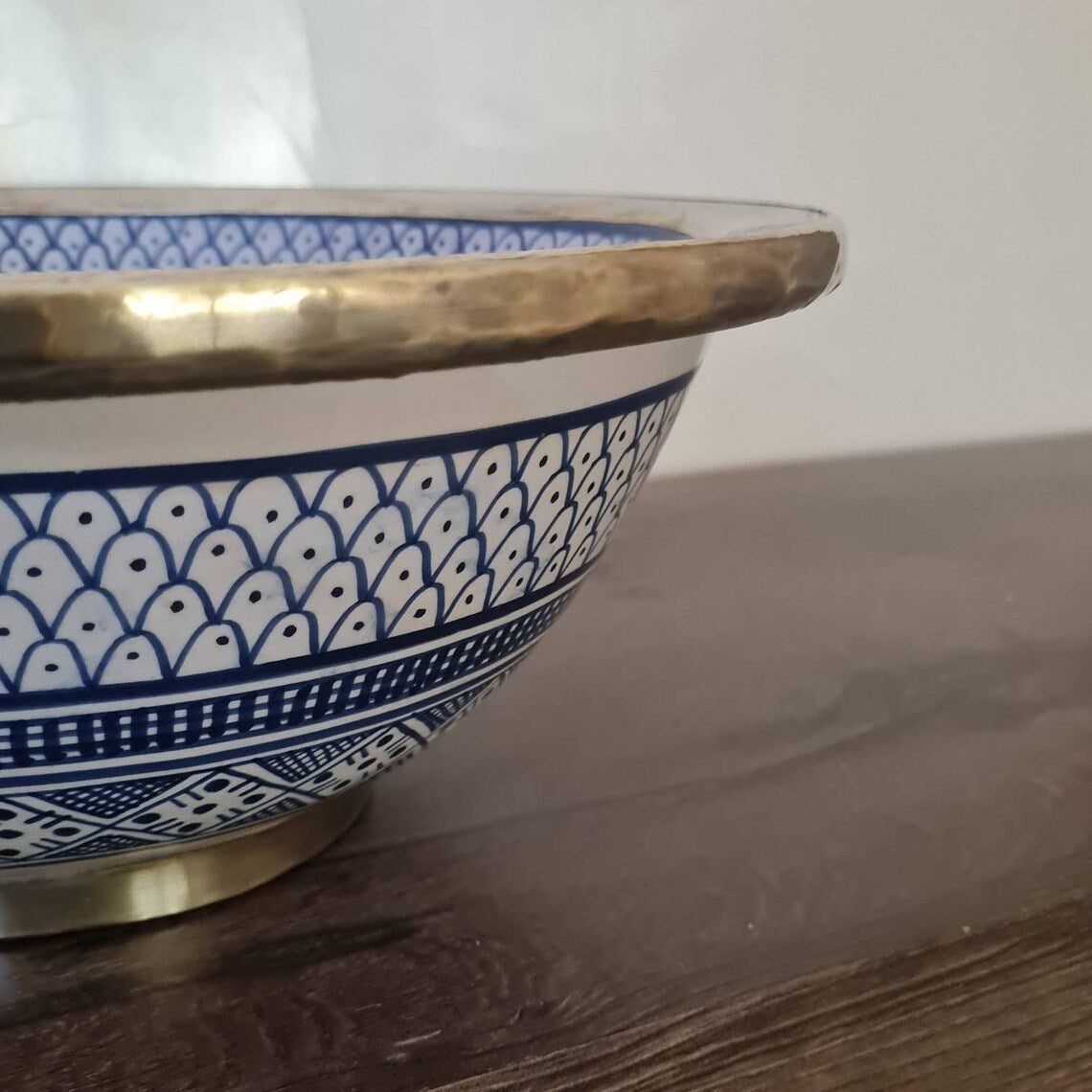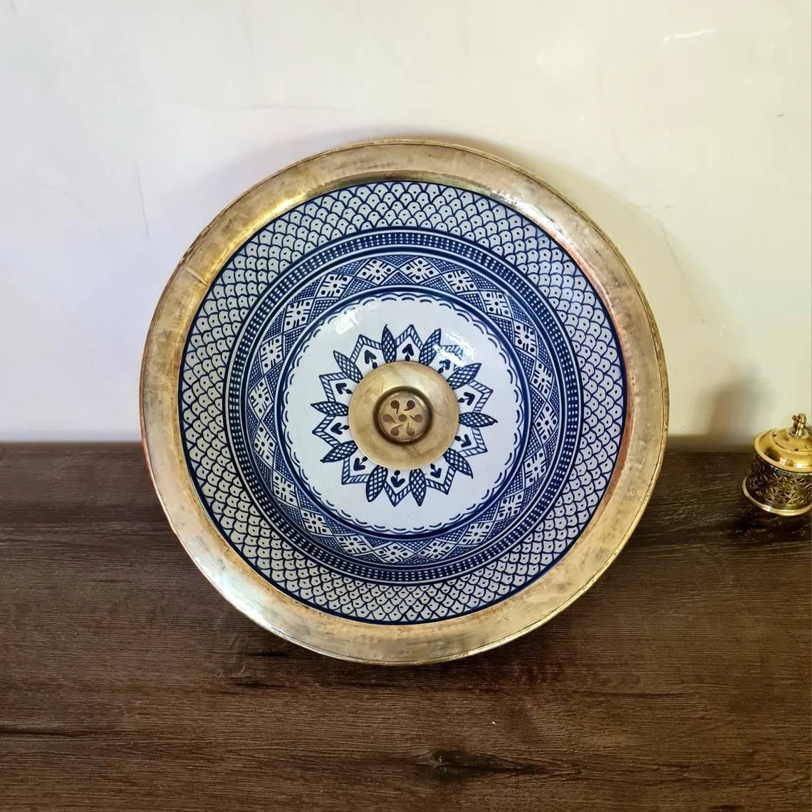 this traditional Moroccan sink SEA AND FISH SCALES design was handcrafted by professional workers, it represents the cultural diversity of Moroccan handcrafts and that is because of its design, material and the natural colors used at the surface of the sink, the height of this amazing piece of art is possibility of personal customization. by obtaining such objects you would be helping a dying craft to flourish again so that contact between the past and the present would never die not mentioning the happiness it would bring to poor workers on fields like this .