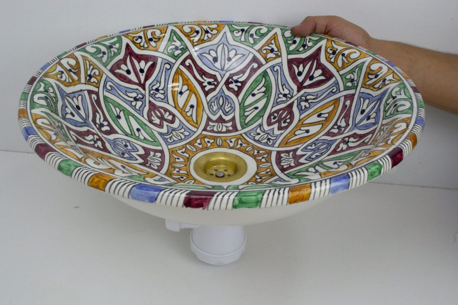 Painted with scenes reminiscent of ancient eastern custom, this sink is sure to catch the eye of anyone who visits you and will give you something to feast your gaze on for years to come. It is created from the finest pottery and will last for a long time. There are multiple dazzling styles available, and we are happy to accommodate your needs and requirements.