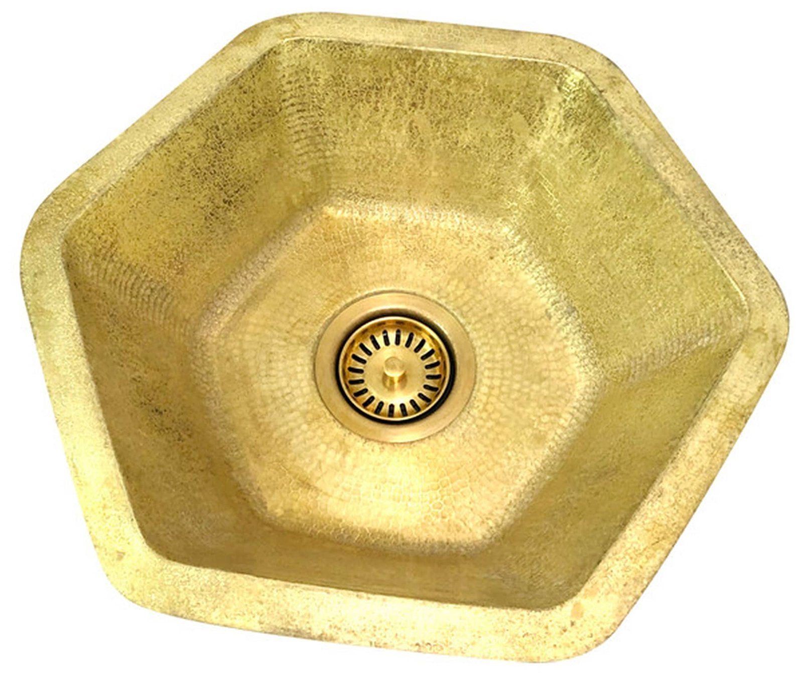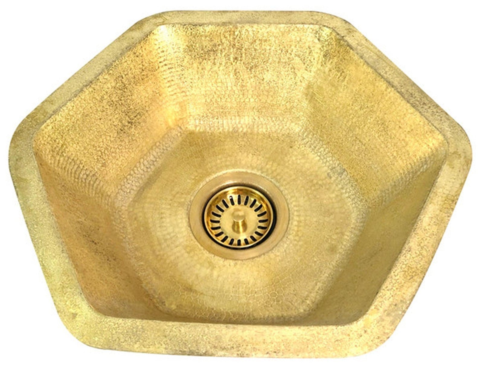 Custom Made Hexagon Brass Bar Prep Sink – Vessel Bathroom Sink – Undermount DropIn Vessel Brass Sink – 16″ x 16″ x 7″