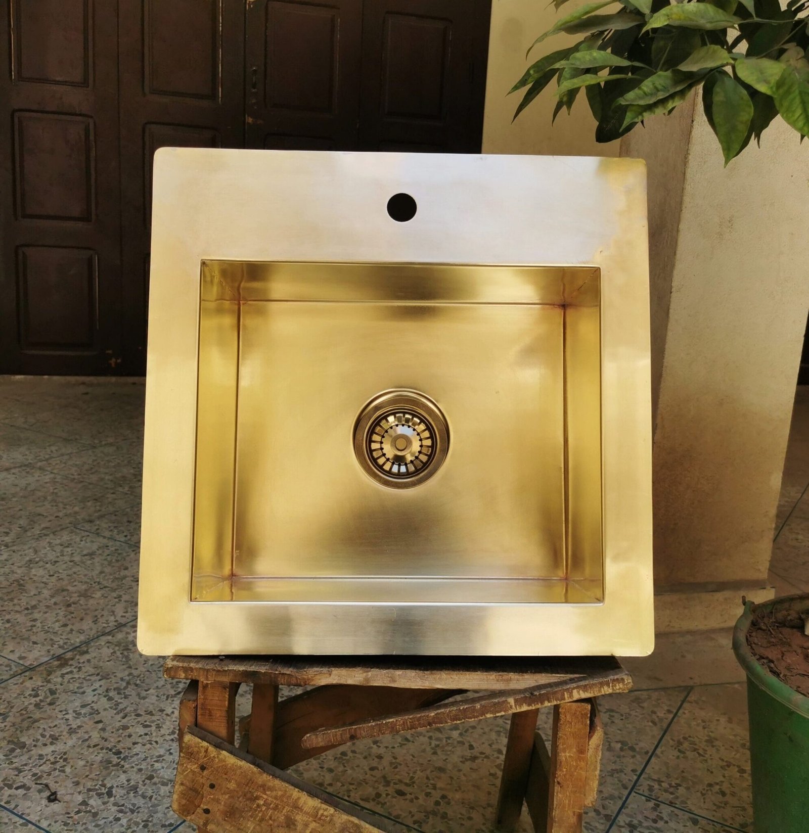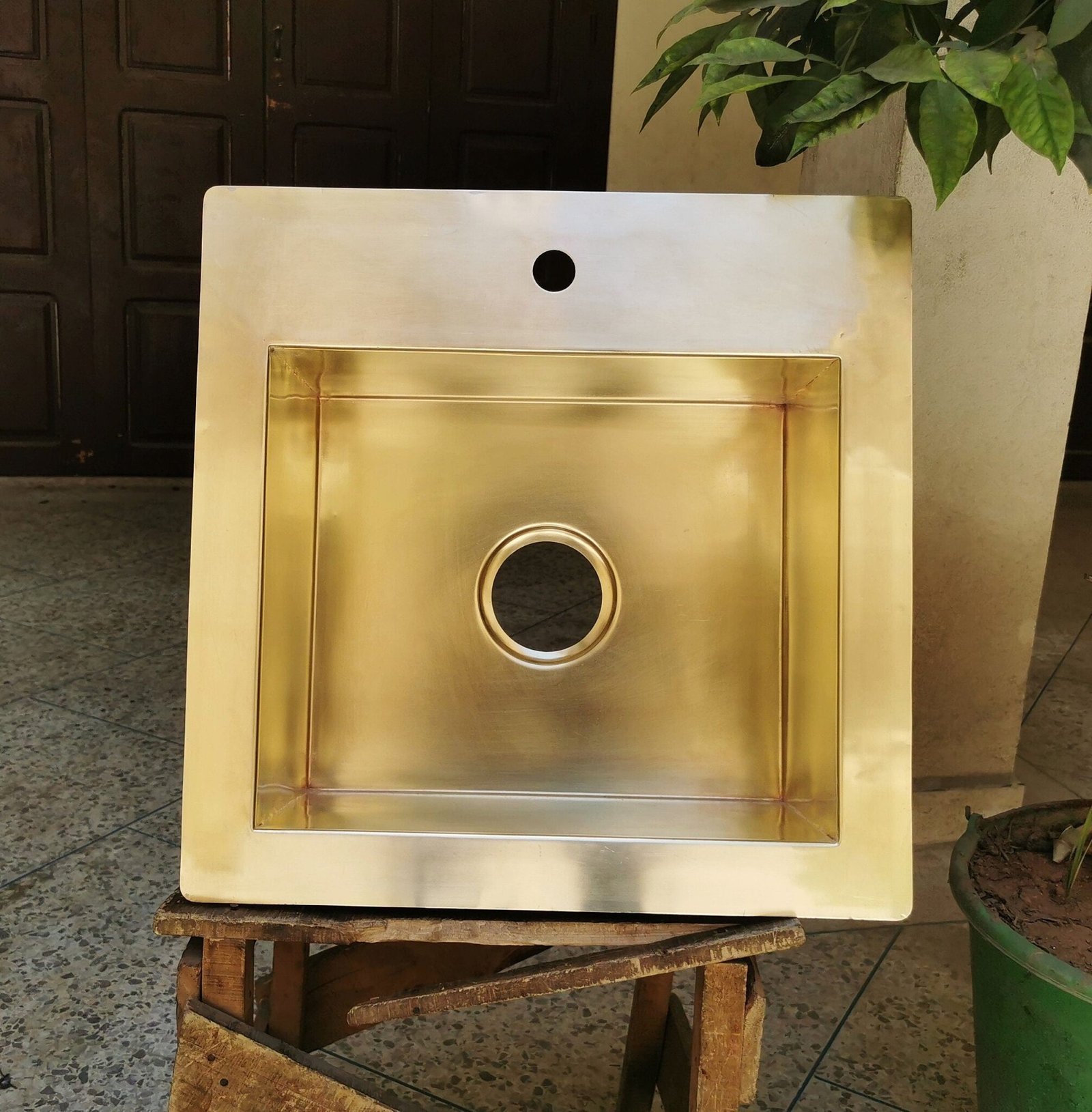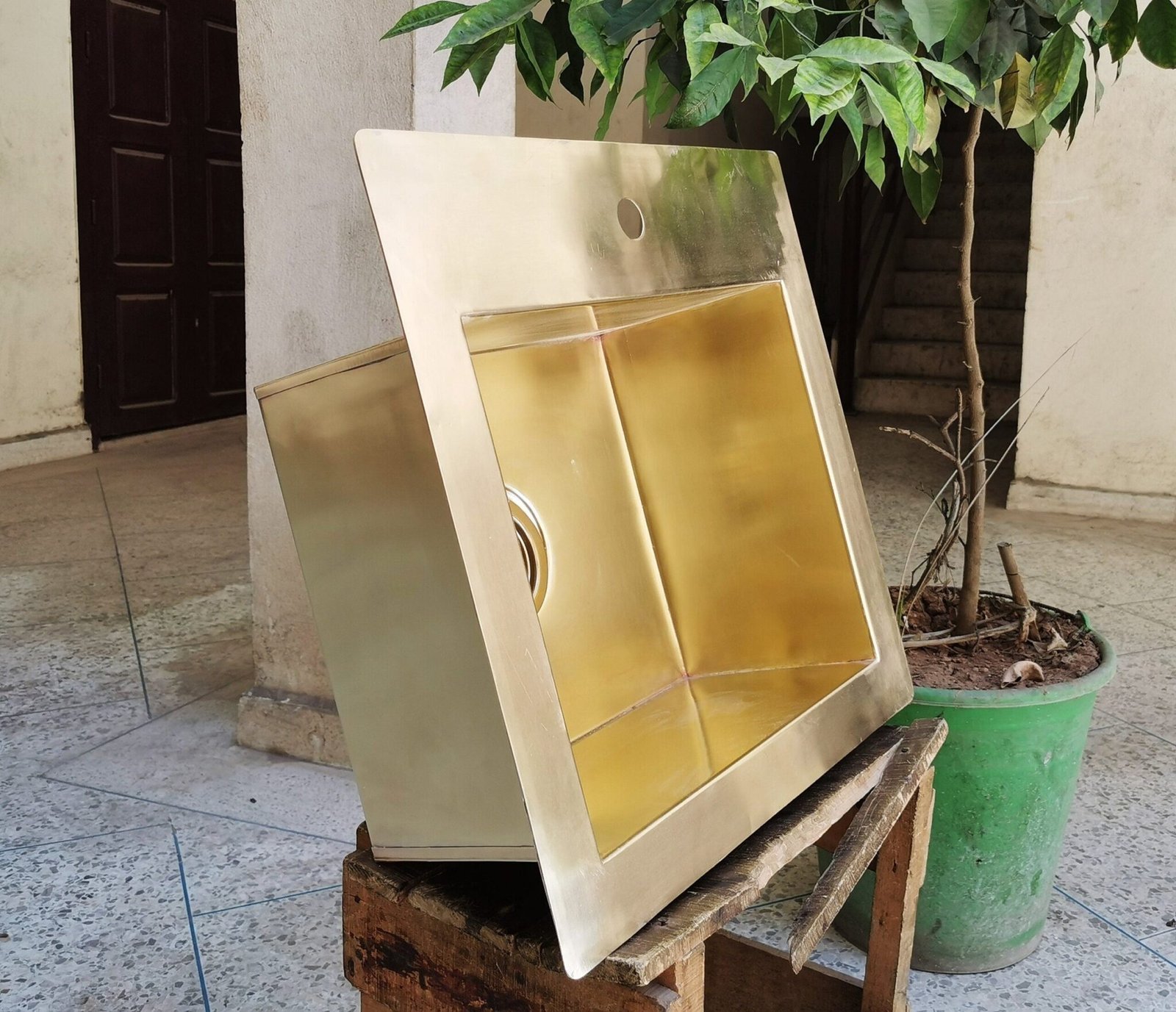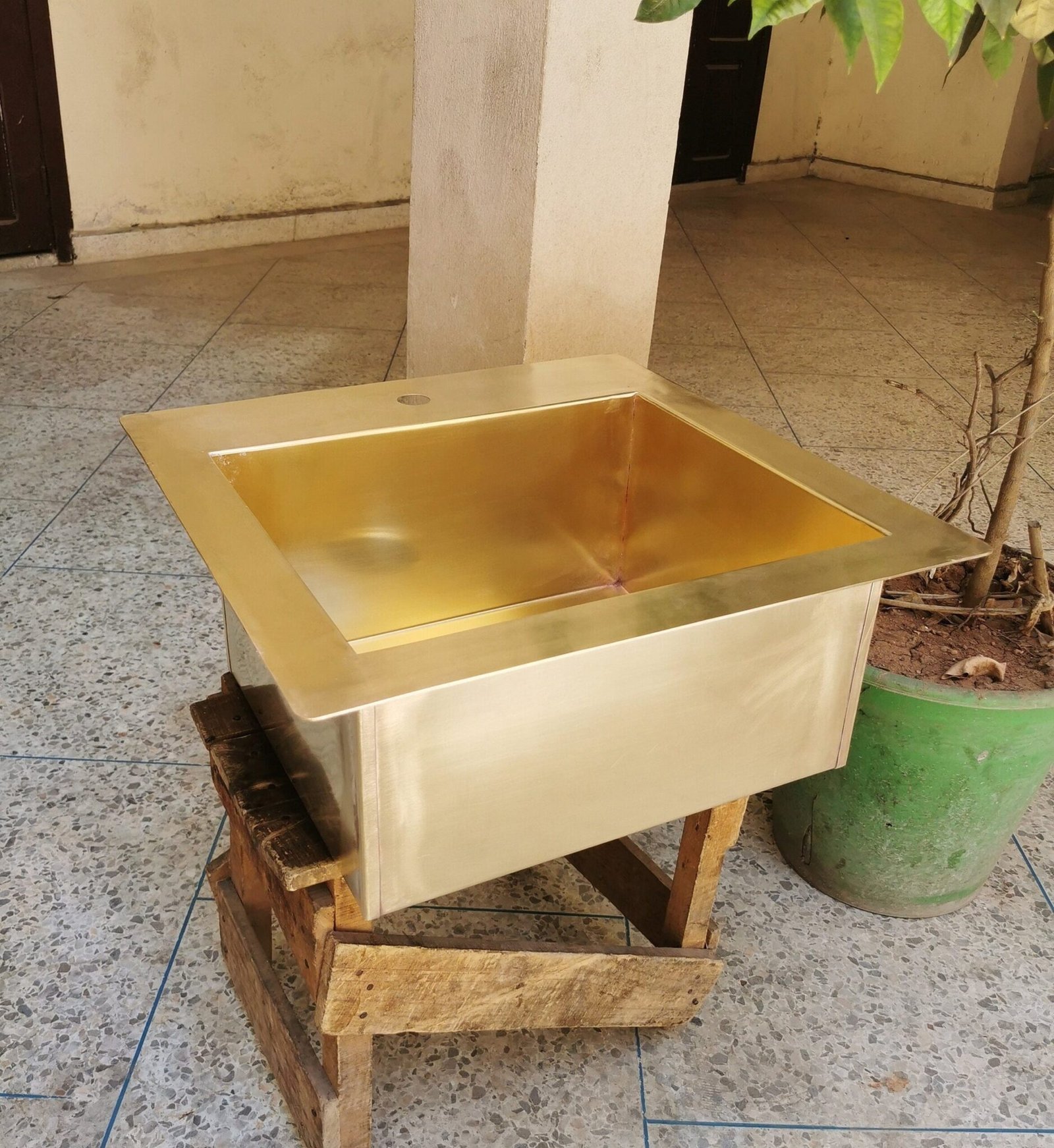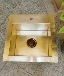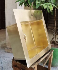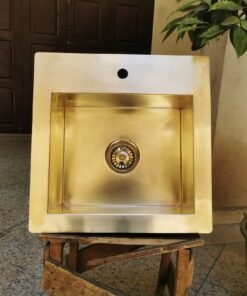 Sink is constructed of thick 16 Gauge brass that will rust or age overtime.