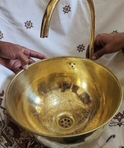 hikwa’s Premium Brass Sink allows you to impress your guests and partake in delight each time you step inside your bathroom. This sink makes a statement on its own showcasing superior engineering. The sink is made of pure copper brass material and is gold finished hammered finish giving it a dramatic sturdy appearance.