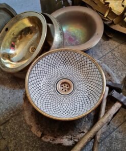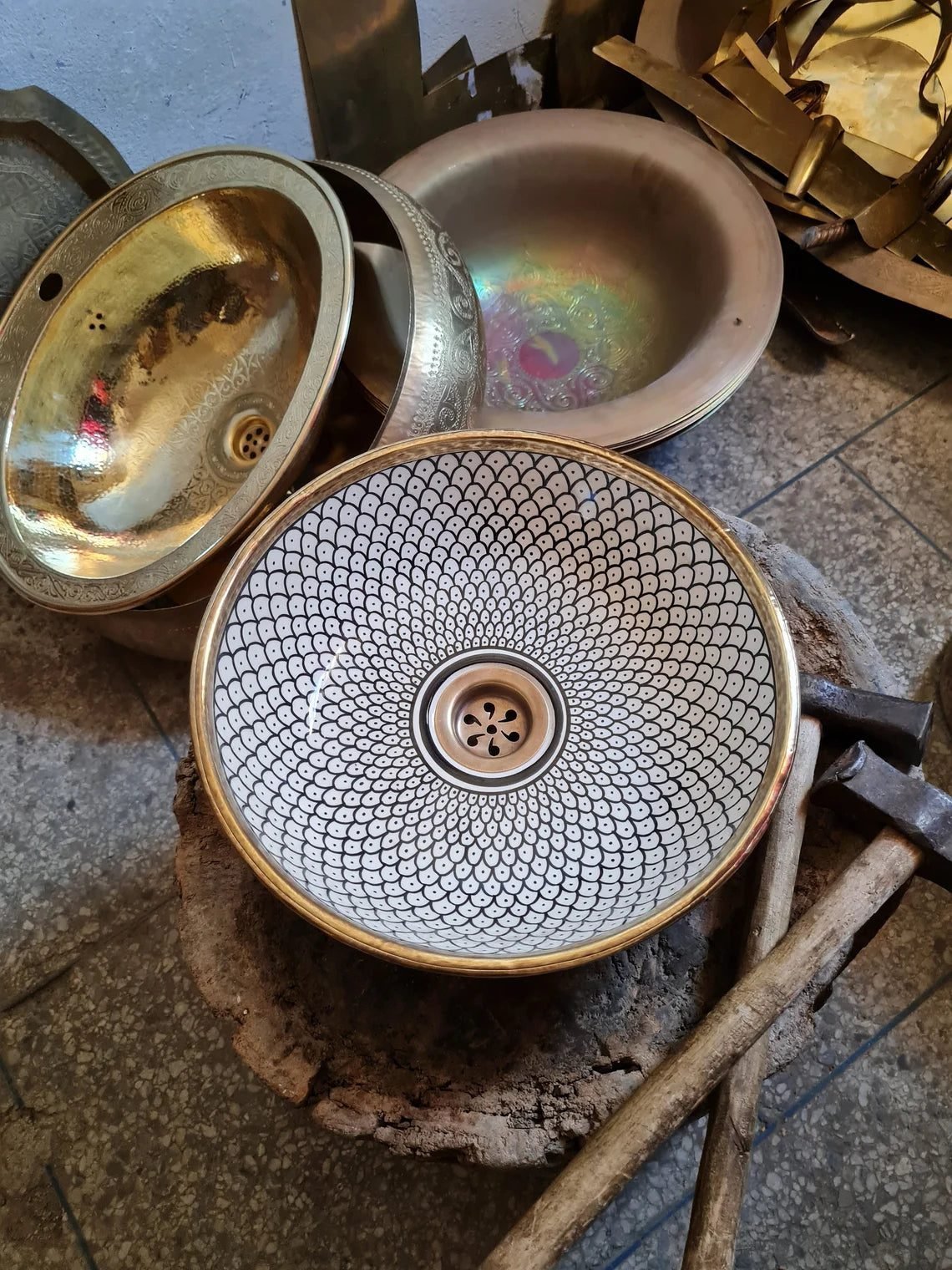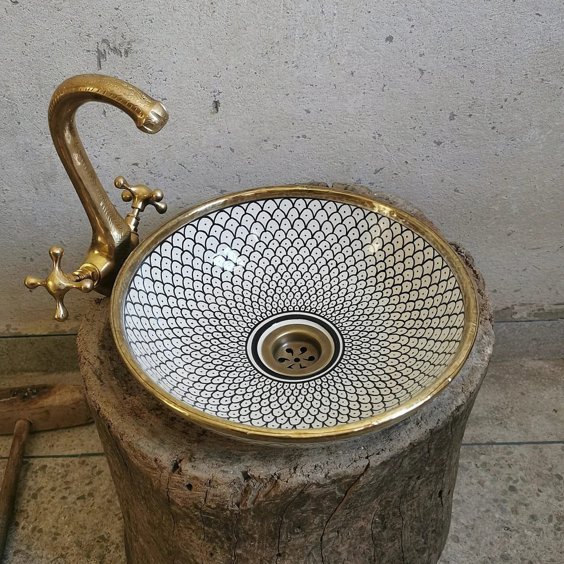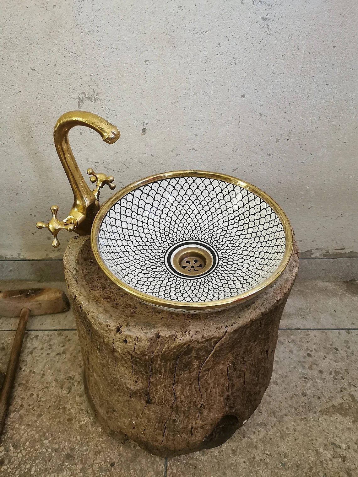this traditional Moroccan sink SEA AND FISH SCALES design was handcrafted by professional workers, it represents the cultural diversity of Moroccan handcrafts and that is because of its design, material and the natural colors used at the surface of the sink, the height of this amazing piece of art is possibility of personal customization. by obtaining such objects you would be helping a dying craft to flourish again so that contact between the past and the present would never die not mentioning the happiness it would bring to poor workers on fields like this .