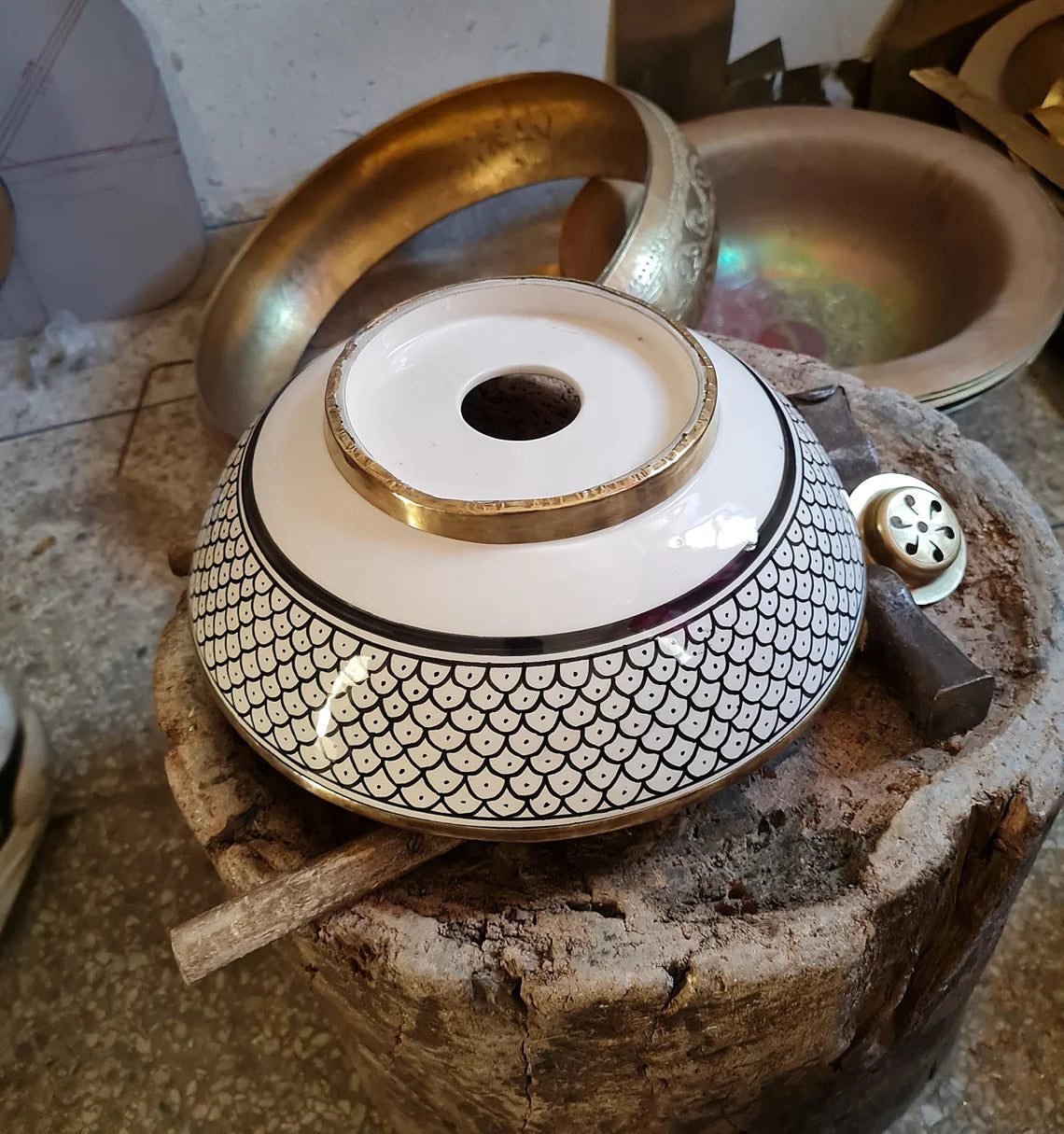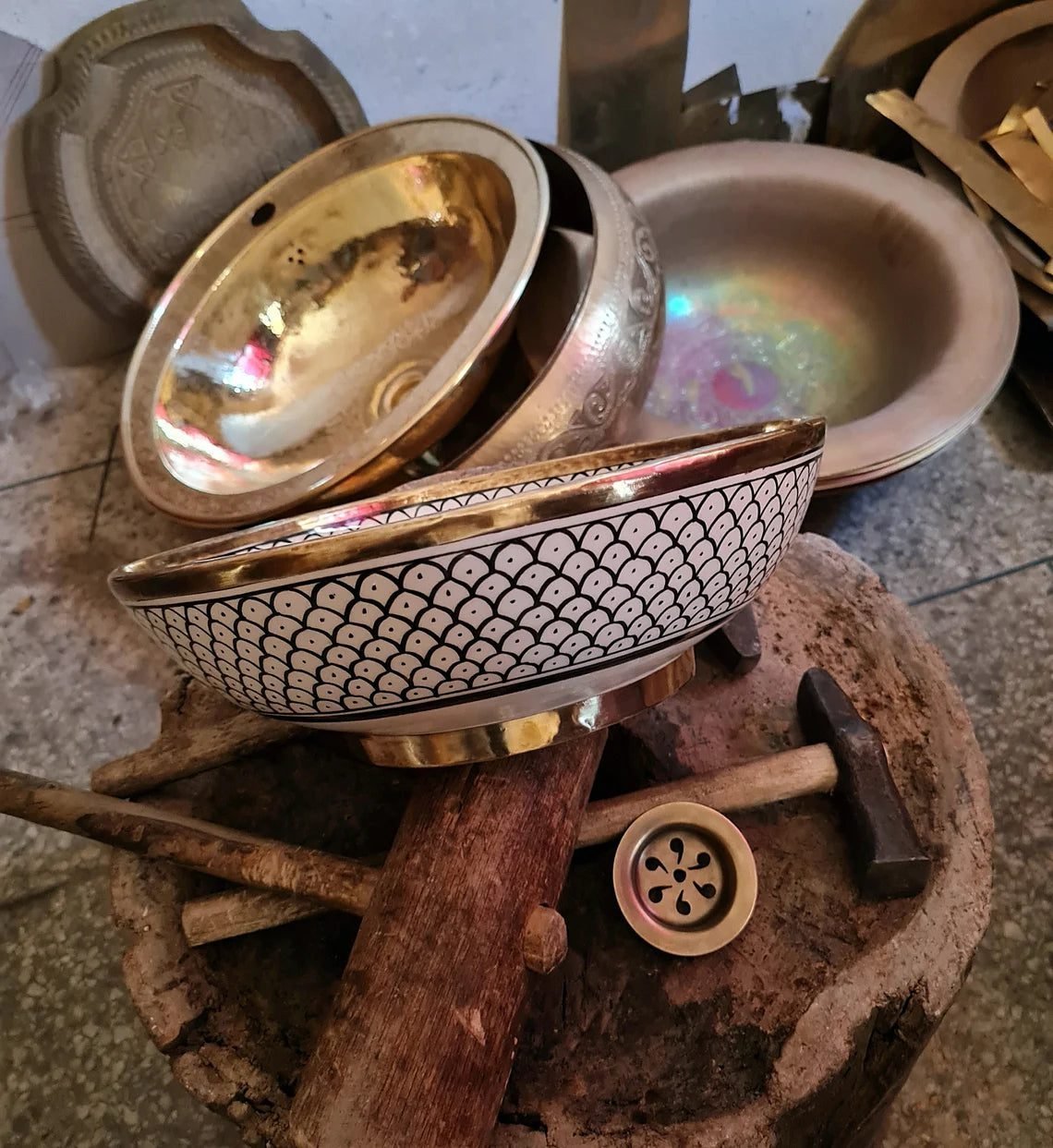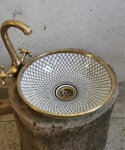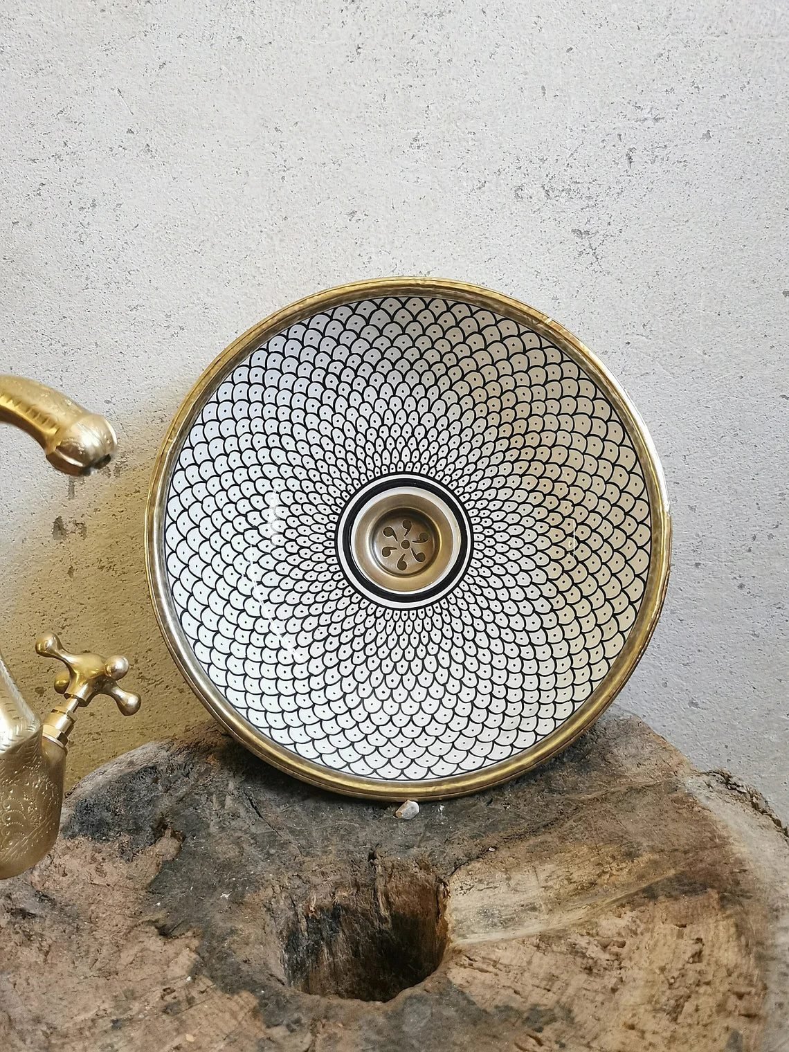 this traditional Moroccan sink SEA AND FISH SCALES design was handcrafted by professional workers, it represents the cultural diversity of Moroccan handcrafts and that is because of its design, material and the natural colors used at the surface of the sink, the height of this amazing piece of art is possibility of personal customization. by obtaining such objects you would be helping a dying craft to flourish again so that contact between the past and the present would never die not mentioning the happiness it would bring to poor workers on fields like this .