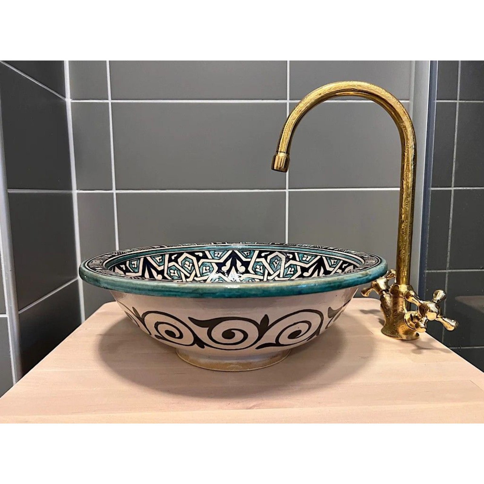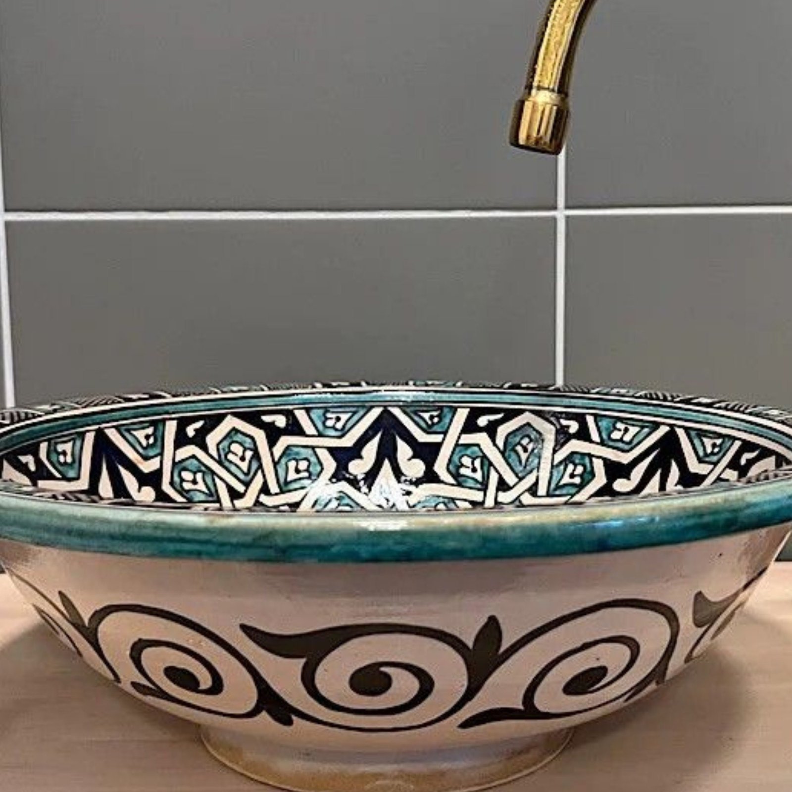 Handcrafted Modern Moroccan Vessel Sink – A Mid Century Modern Style Ceramic Basin for Stylish Guest Rooms and Bathrooms