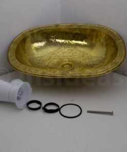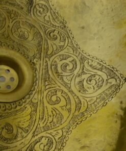 -Handcrafted moroccan pattern etched solid brass drop in bathroom sink, made of a 16th pure brass sheet with its matching drain. Made in Fes by passionate craftsmen and excellent workmanship, designed to last.
