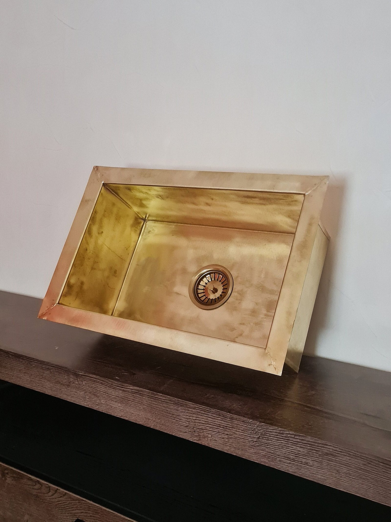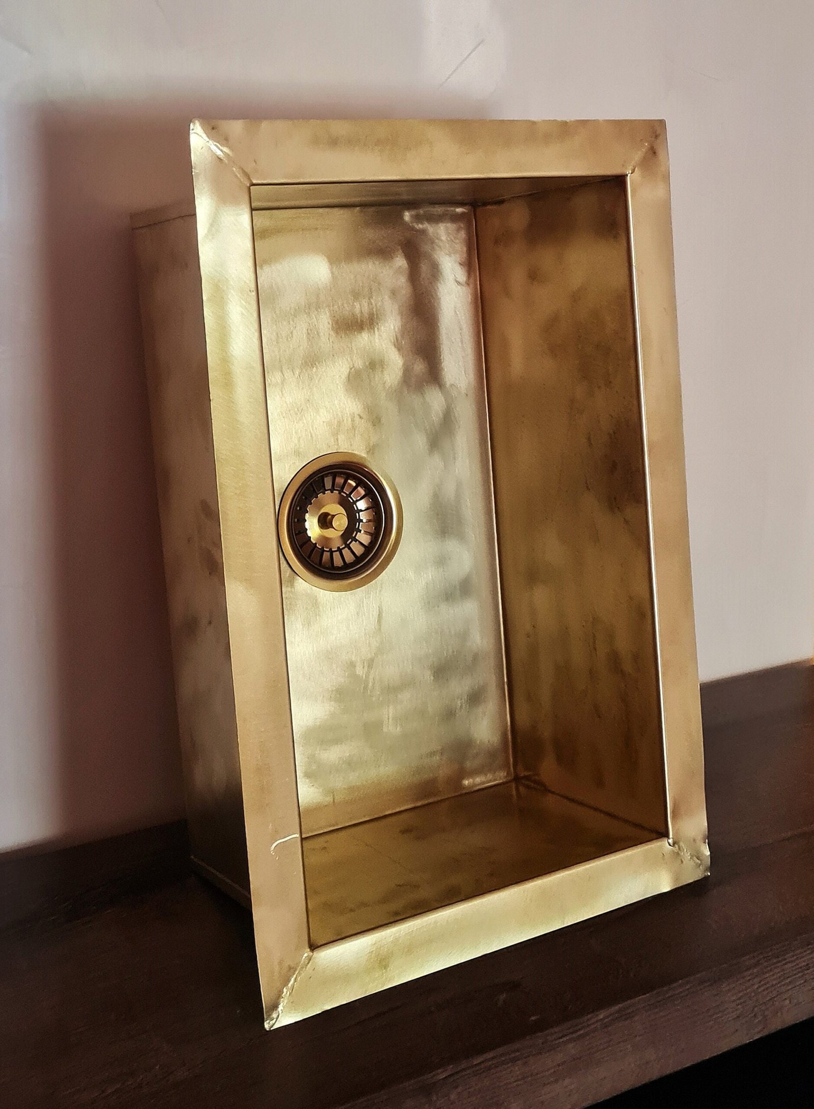 Unlacquered Handmade Brass Kitchen Sink Butler With Customizable Sizes